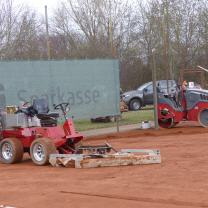 Es war eine ereignisreiche Woche, erst die Vandalen, die auf dem Gelände viel Schaden angerichtet haben, dann mit Verzögerung die Frühjahrs-Instandsetzung durch die Firma Nohe, und zuletzt haben unsere Platzwarte noch die Bäume am Zaun abgeschnitten. Wir hoffen, dass dadurch die Feuchtigkeit auf den Plätzen 1-3 die Plätze besser abtrocknet und außerdem waren mehr als die Hälfte der Bäume schon abgestorben.